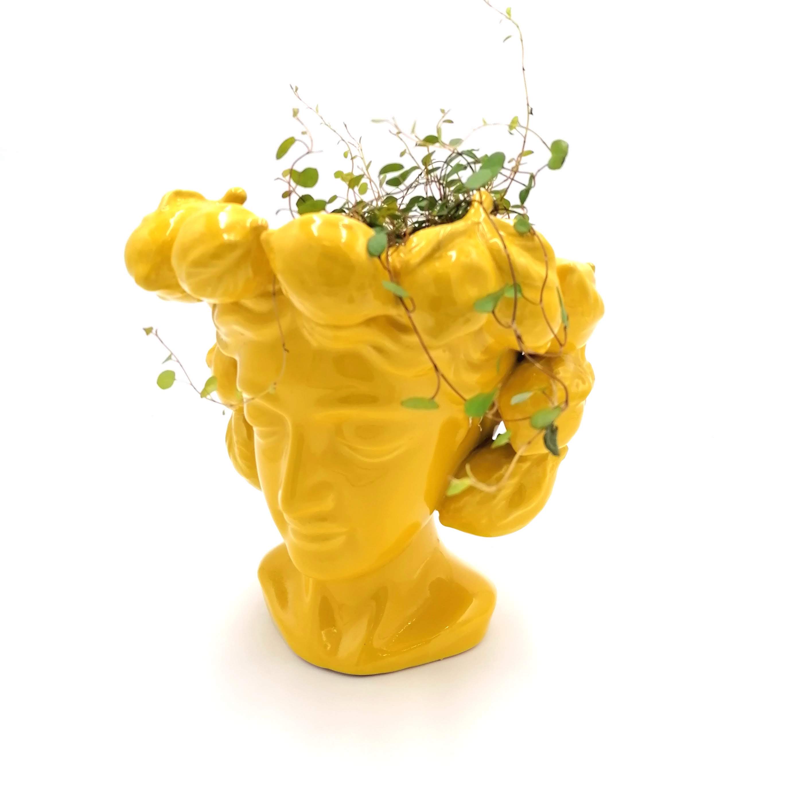 Kvalitní keramický obal nebo váza na květiny od italského výrobce EDG. Oblíbené torzo hlavy s citronovou korunou v barvě roku žluté dodá Vašemu interiéru punc jižních států.