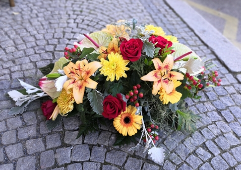 kytici můžeme doručit do kostela či smuteční síně před obřadem a o její vystavení se postarat osobně.